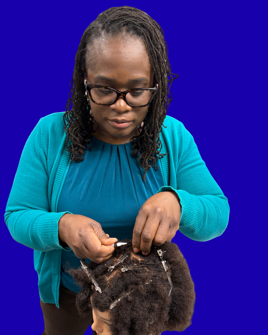 My background is in social work, where I spent years helping people improve their lives and feel supported. That same love for helping others led me to discover my passion for Sisterlocks.